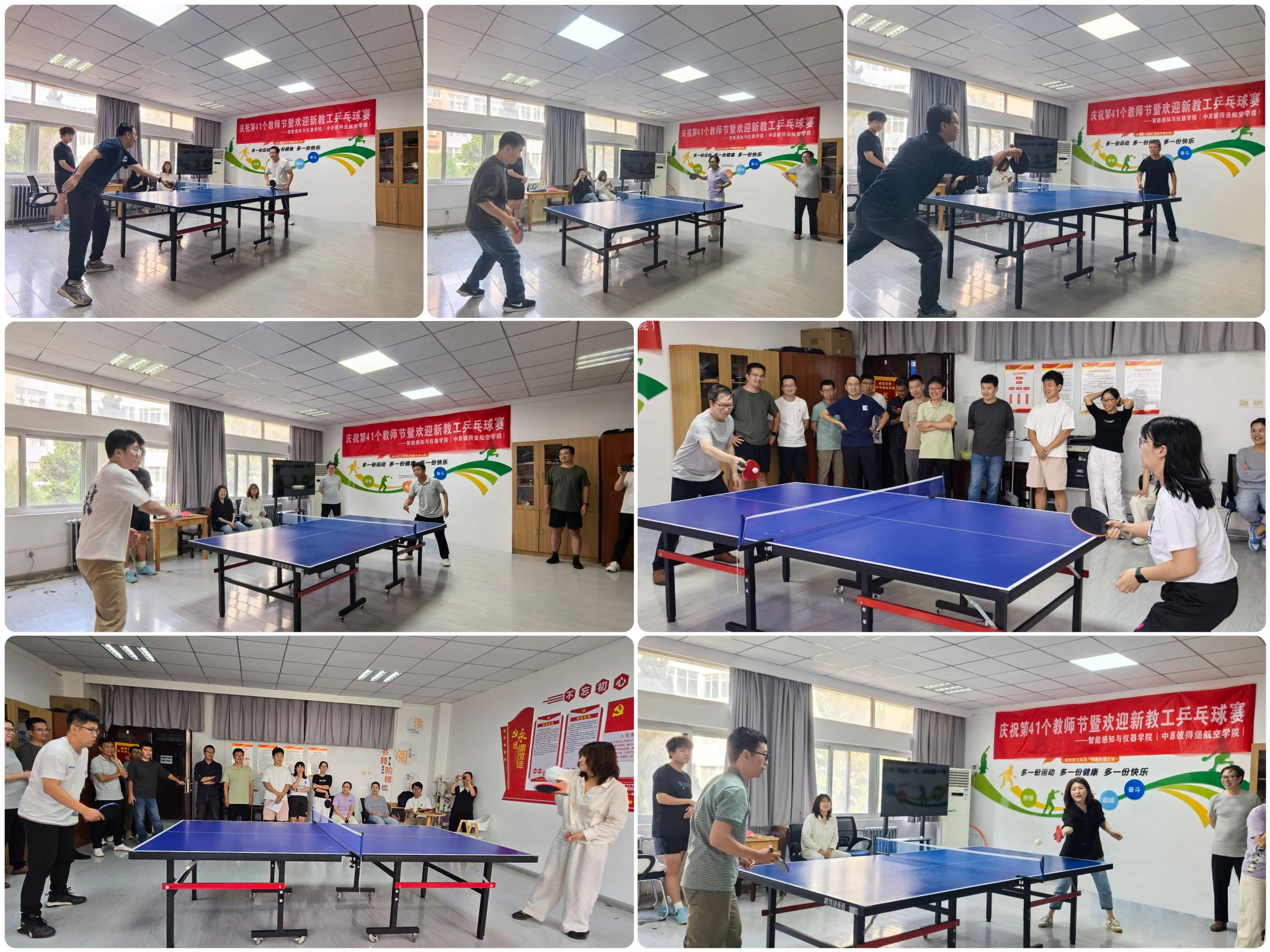 “工会小家”组织了新老教工乒乓球联谊赛。全体教职工欢聚一堂,以球会友,共庆教师节。